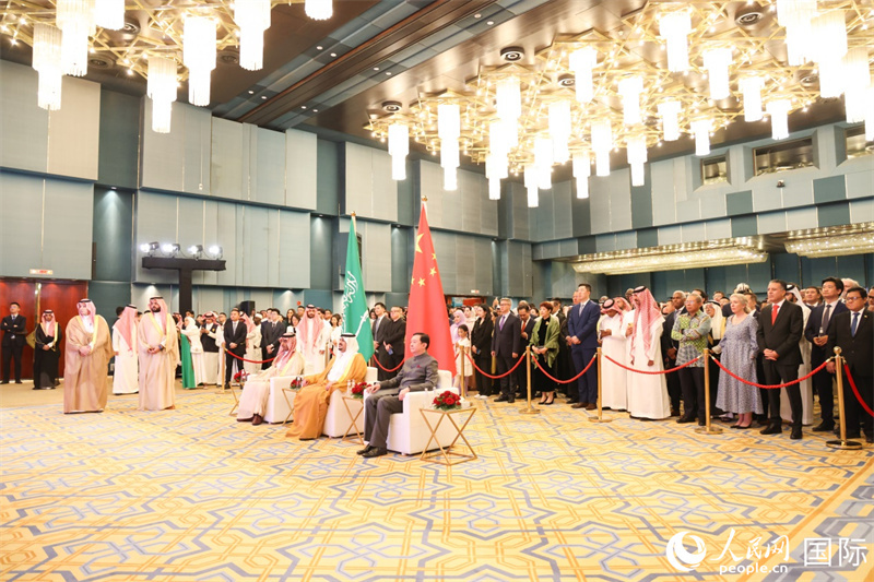 人民網(wǎng)利雅得9月26日電(記者任皓宇)9月25日,中國駐沙特使館舉行招待會(huì),熱烈慶祝中華人民共和國成立76周年和中沙建交35周年。沙特利雅得地區(qū)副埃米爾穆罕默德·本·阿卜杜拉赫曼親王、沙內(nèi)政部副大臣阿卜杜勒阿齊茲·阿亞夫親王、沙外交部次大臣賽馬里以及沙政府有關(guān)部門和軍隊(duì)高級(jí)官員,各國駐沙使節(jié)和伊斯蘭合作組織代表,沙各界友好人士,在沙中資機(jī)構(gòu)、教師留學(xué)生、華僑華人代表約600人出席。