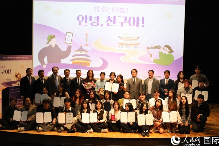 人民網(wǎng)首爾9月29日電 (記者莽九晨)29日,“你好,朋友!”中韓青年短視頻大賽頒獎(jiǎng)典禮在首爾舉行。中國(guó)駐韓國(guó)大使戴兵、韓國(guó)《中央日?qǐng)?bào)》代表理事樸長(zhǎng)羲出席并頒獎(jiǎng)、致辭。