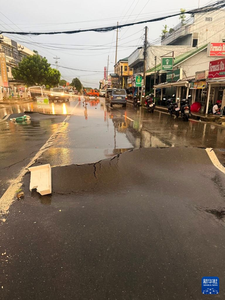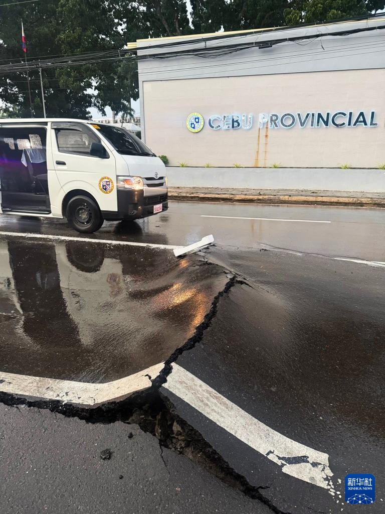 這是10月1日在菲律賓宿務省拍攝的在地震中損壞的道路。新華社發(fā)(宿務省地方政府供圖)