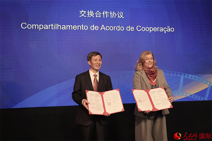 中央廣播電視總臺(tái)與巴西盒子媒體集團(tuán)在第五屆巴西“中國影視作品展播季”活動(dòng)中交換影視節(jié)目播出合作協(xié)議。人民網(wǎng)記者 時(shí)元皓攝