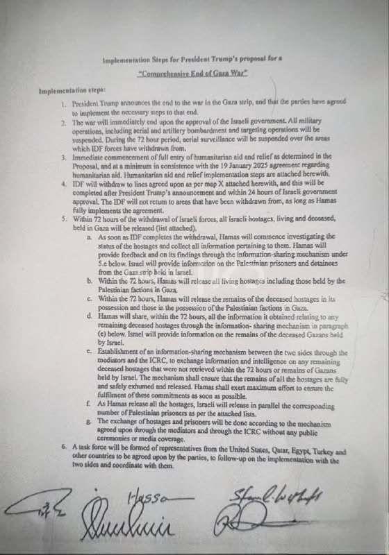 當(dāng)?shù)貢r(shí)間9日夜間,以色列公共廣播公司Kan發(fā)布了以色列、哈馬斯和調(diào)解員在埃及簽署的釋放被扣押人員和結(jié)束加沙沖突的協(xié)議副本。這份文件詳細(xì)介紹了該協(xié)議的各個(gè)部分。