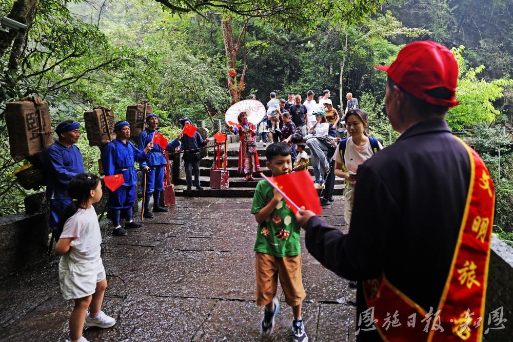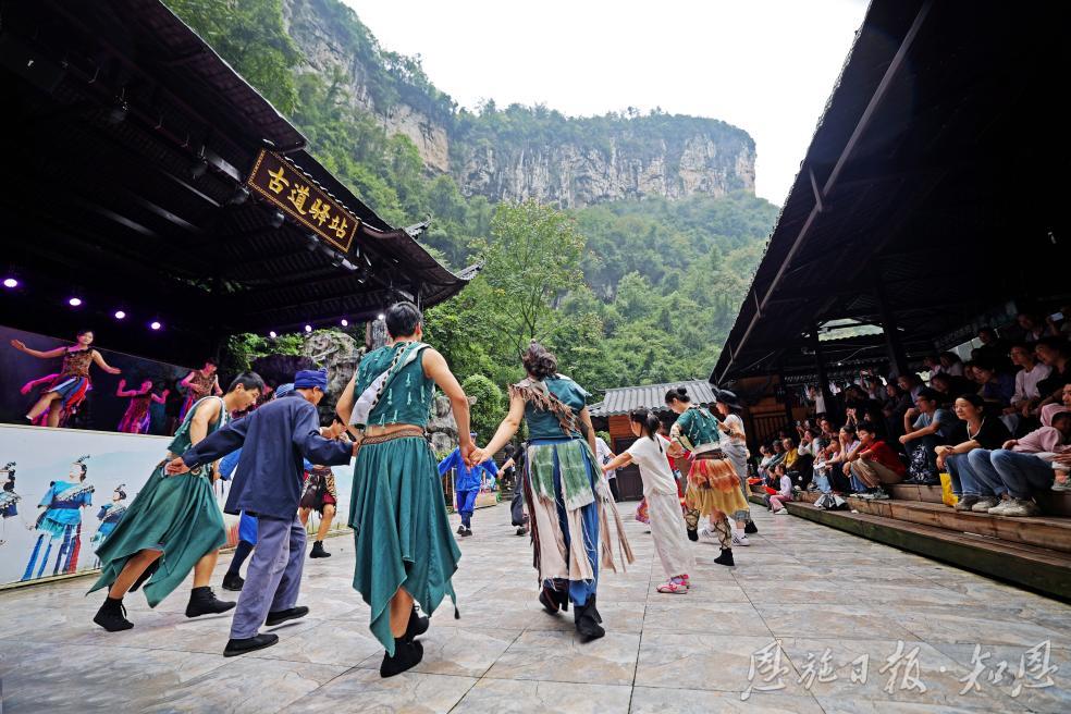 此外,“非遺鬧峽谷”,雙節(jié)間景區(qū)各處其豐富多彩的非遺文化活動(dòng)為這趟自然之旅增添不少韻味。湖北省民族歌舞團(tuán)的駐場(chǎng)演出、《地心之戀》實(shí)景劇、《鹽道古風(fēng)》原生生態(tài)表演等,讓游客在領(lǐng)略自然奇觀的同時(shí),也能深度體驗(yàn)深厚的土家苗族文化與千年巴鹽古道歷史。山水與人文在此完美交融,締造出獨(dú)一無(wú)二的旅行記憶。