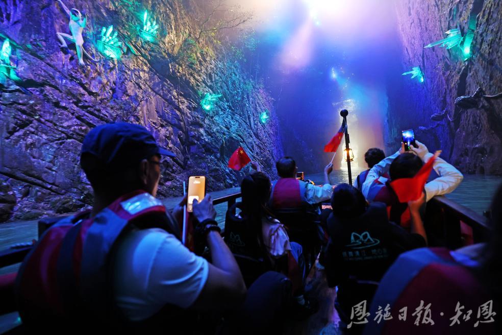 “地心奇航”作為景區(qū)全新推出的峽谷Npc王牌項(xiàng)目,成為這個(gè)假期恩施旅游當(dāng)之無(wú)愧的人氣明星,尤其受到家庭游客的青睞。游客們乘船緩緩潛入“中國(guó)紅”世界里的地心秘境,地心先知、鵲橋飛歌、踏浪迷航、時(shí)空裂縫、冰河時(shí)代、地心熔巖、巨獸之巢、地心烙印迷境中,沿途石幔如瀑、穹頂若星,情景交融,在清澈的地下河上享受“水陸并行”的獨(dú)特視角。