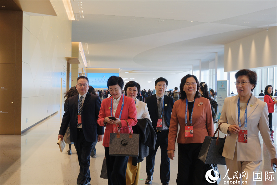 | 全球婦女峰會(huì)嘉賓步入會(huì)場(chǎng)。人民網(wǎng)記者 宋美琪攝 |