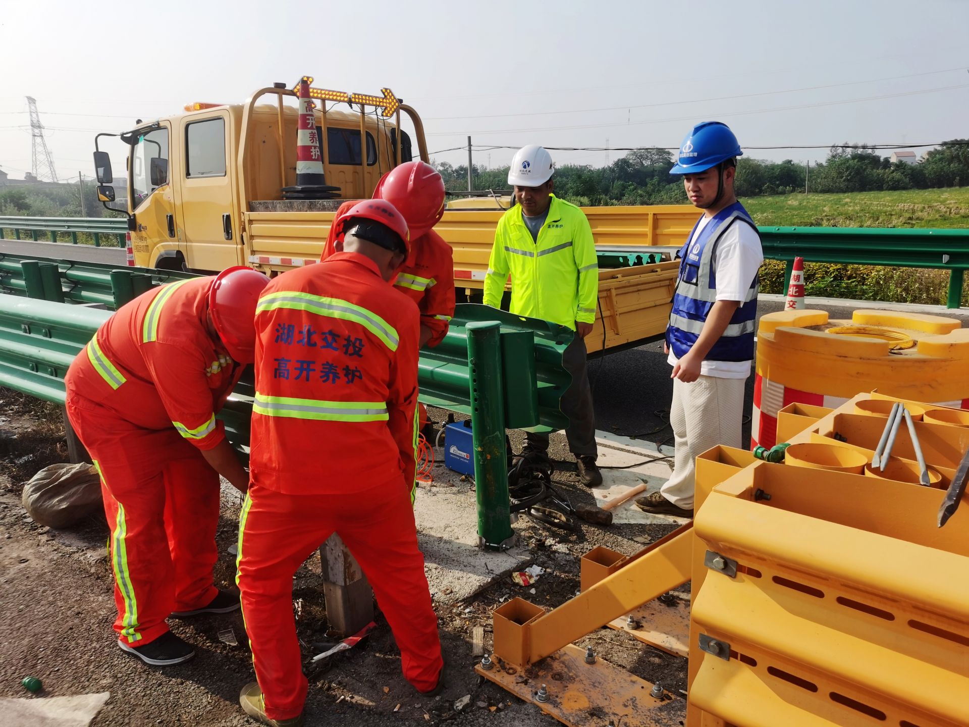 圖:孝漢應(yīng)高速孝感北互通漢孝向安裝防撞墊及護(hù)欄板
