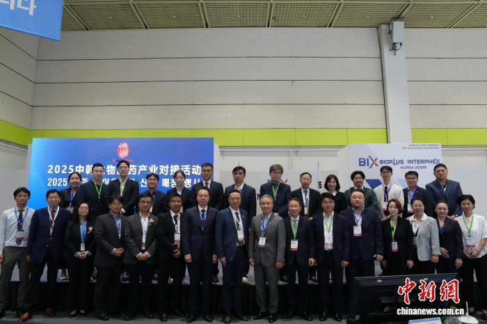 10月15日,“2025中韓生物醫(yī)藥產(chǎn)業(yè)對(duì)接活動(dòng)”在韓國(guó)國(guó)際生物醫(yī)藥展會(huì)期間于首爾舉辦。圖為活動(dòng)合影。中新網(wǎng)記者 劉旭 攝