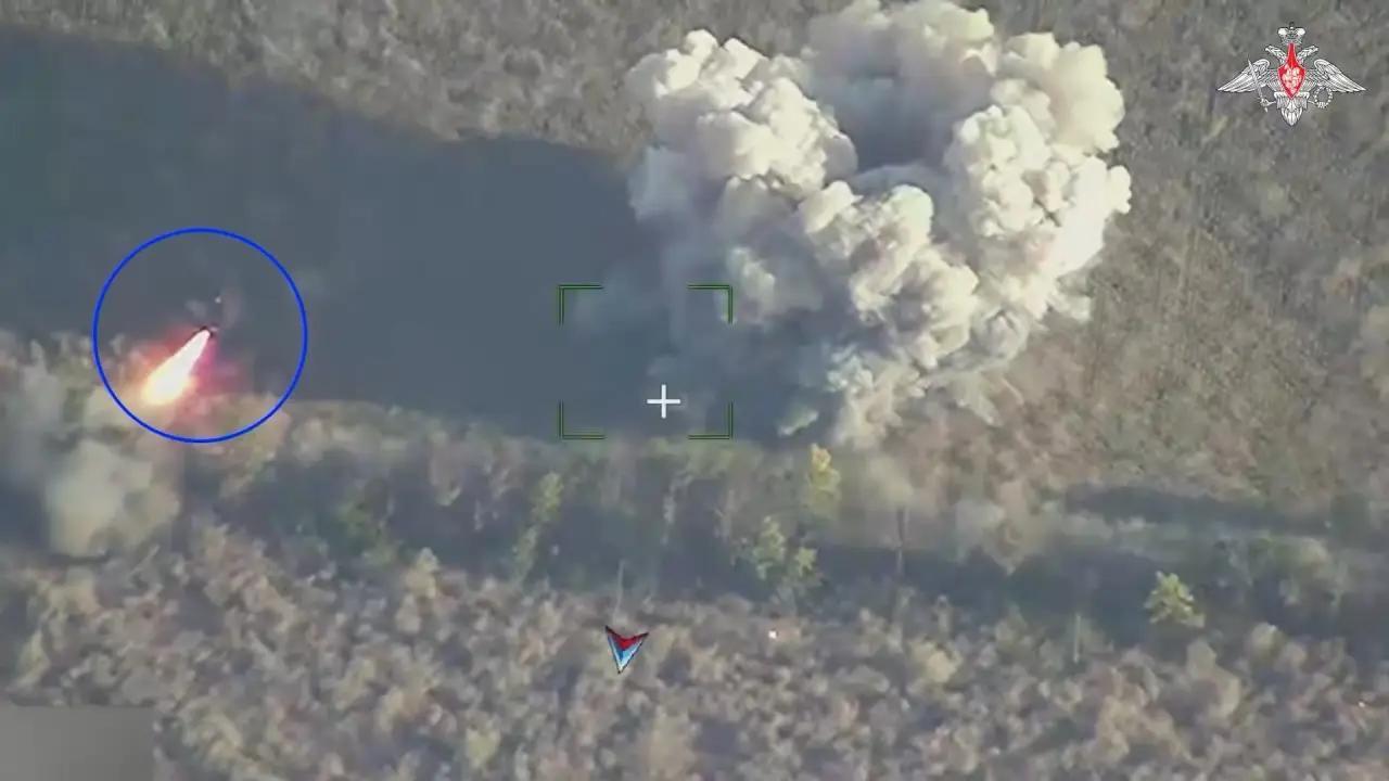 俄軍攔截Neptun-d成功,右側(cè)塵埃云為俄“伊斯-M”導(dǎo)彈爆炸產(chǎn)生,左藍(lán)圈為Neptun-d火箭發(fā)動(dòng)機(jī)被彈片擊中