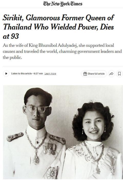 報(bào)道稱(chēng),詩(shī)麗吉是泰國(guó)先王普密蓬·阿杜德的王后,也是現(xiàn)任國(guó)王瑪哈·哇集拉隆功的母親。