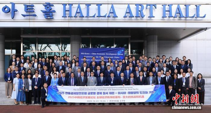 10月24日,2025中韓經(jīng)濟(jì)發(fā)展論壇在韓國(guó)濟(jì)州開(kāi)幕。圖為論壇與會(huì)嘉賓合影。韓國(guó)京畿大學(xué)韓中經(jīng)濟(jì)發(fā)展研究所 供圖