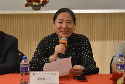 里約熱內(nèi)盧天主教大學(xué)孔子學(xué)院院長(zhǎng)孫艷萍,巴西文協(xié)副主席吳財(cái)斌、周徑剛出席座談會(huì)。座談會(huì)由巴西文協(xié)秘書(shū)長(zhǎng)伍小曼主持。