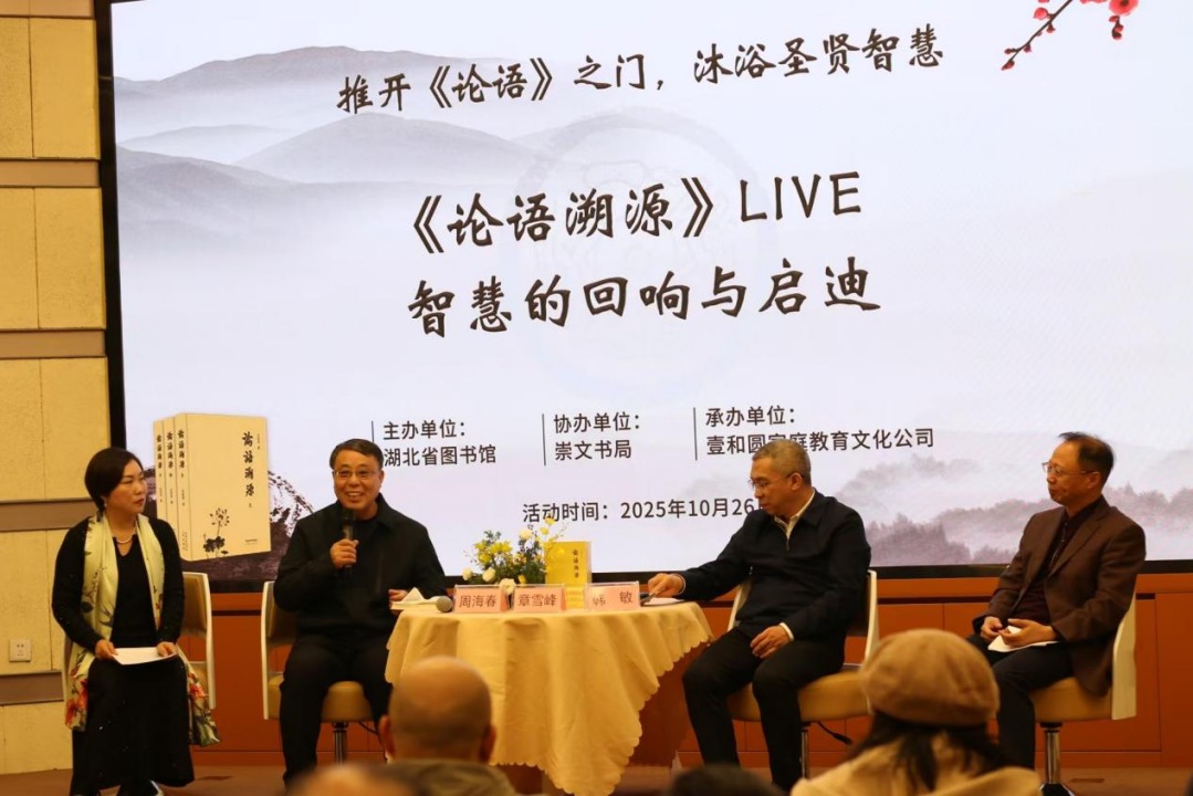 荊楚網(wǎng)(湖北日報網(wǎng))訊(通訊員 黃曉玉)2025年10月26日下午,湖北省圖書館一樓報告廳內(nèi)座無虛席,一場以“推開《論語》之門,沐浴圣賢智慧”為主題的“真人圖書”活動在此舉行。此次活動以《論語溯源》新書分享為核心,通過作者講述、學者點評、讀者互動與沉浸體驗等多維形式,為公眾呈現(xiàn)了一場兼具學術(shù)深度與生活溫度的國學文化盛宴。