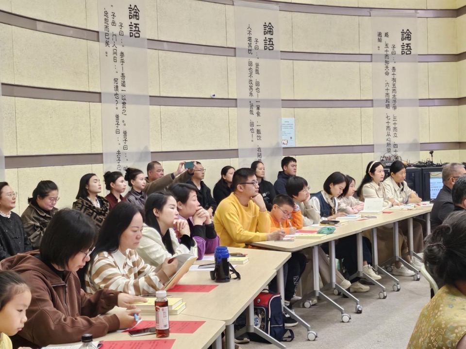 活動現(xiàn)場,來自新疆、河北等地的傳統(tǒng)文化愛好者與楚天數(shù)字書院研學班師生踴躍提問,與嘉賓展開熱烈互動。活動尾聲,全體參與者齊聲誦讀《論語》經(jīng)典章句,瑯瑯書聲回蕩廳內(nèi),讓千年智慧在當下煥發(fā)新生。此外,“論語生活美學展區(qū)”與“智慧之泉”互動墻等沉浸式體驗環(huán)節(jié),也讓讀者在場景中感受經(jīng)典與日常的融合之美。
