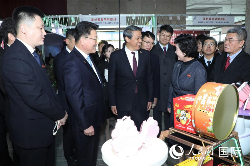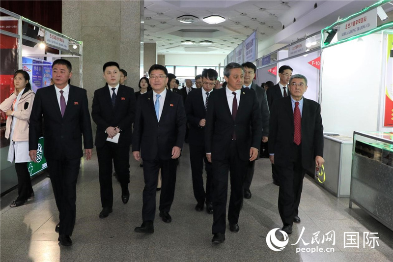 開幕式結(jié)束后,中國駐朝鮮大使王亞軍陪同經(jīng)濟(jì)相參觀了部分中國企業(yè)展臺(tái),詳細(xì)聽取工作人員對(duì)產(chǎn)品的介紹。人民網(wǎng)記者 劉融攝
