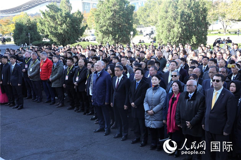應(yīng)朝方邀請(qǐng),中國駐朝鮮使館外交官和駐朝外交使團(tuán)一道參加開幕式。人民網(wǎng)記者 劉融攝