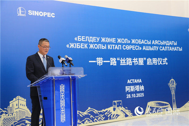 人民網(wǎng)阿斯塔納10月28日電 (記者李強(qiáng))10月28日,由中國石油化工集團(tuán)與哈薩克斯坦歐亞大學(xué)共同主辦的“絲路書屋”啟用儀式于哈薩克斯坦歐亞大學(xué)舉行。中國駐哈薩克斯坦使館公使銜參贊蘇予、歐亞大學(xué)校長埃爾蘭·西德科夫、中石化駐哈機(jī)構(gòu)總代表曾凡禮出席儀式并致辭。