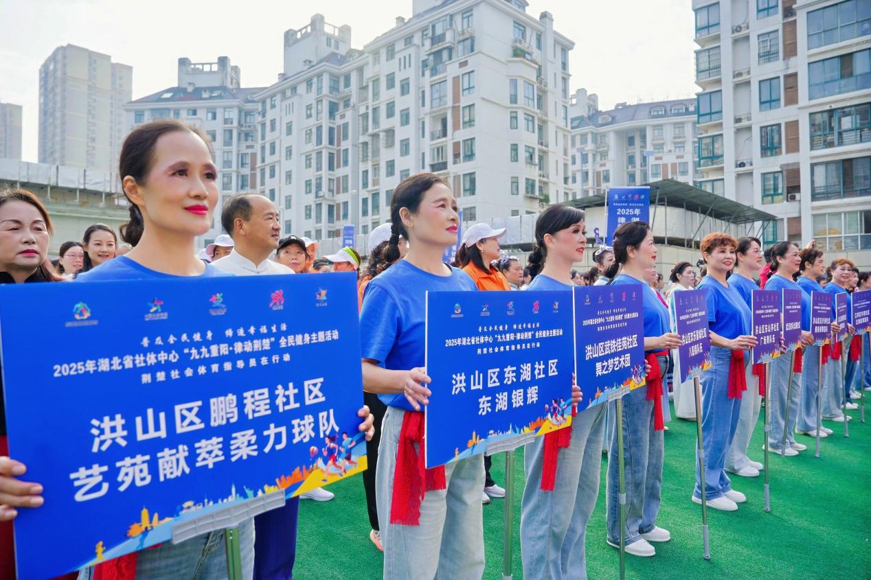 10月28日,“九九重陽?律動荊楚”湖北社體全民健身主題活動在梨園街綜合養(yǎng)老服務中心舉行?;顒佑珊笔∩鐣w育管理中心、武漢市洪山區(qū)體育局、梨園街道辦事處聯(lián)合主辦,湖北省社會體育指導員協(xié)會、湖北省健身舞協(xié)會、華中科技大學同濟醫(yī)學院附屬梨園醫(yī)院、梨園街道綜合養(yǎng)老服務中心承辦,湖北省衛(wèi)生健康宣傳教育中心、武漢市洪山區(qū)衛(wèi)生健康局、武漢市洪山區(qū)醫(yī)療保障局等單位支持。活動現場,東湖社區(qū)、歡樂星城社區(qū)、武鐵佳苑社區(qū)等十余支隊伍帶來太極扇、廣場舞、瑜伽、柔力球及八段錦展演,老年群體以昂揚姿態(tài)展現健康風采。展演結束后,五名世界級運動冠軍現場指導科學健身技巧,帶動全民參與熱情?;顒油皆O置便民集市,梨園醫(yī)院與湖北省中醫(yī)院專家團隊提供免費義診,AI科技互動展區(qū)通過科技互動展示智慧養(yǎng)老新場景、“套圈贏好禮”等趣味游戲讓老人樂在其中,現場洋溢歡聲笑語。