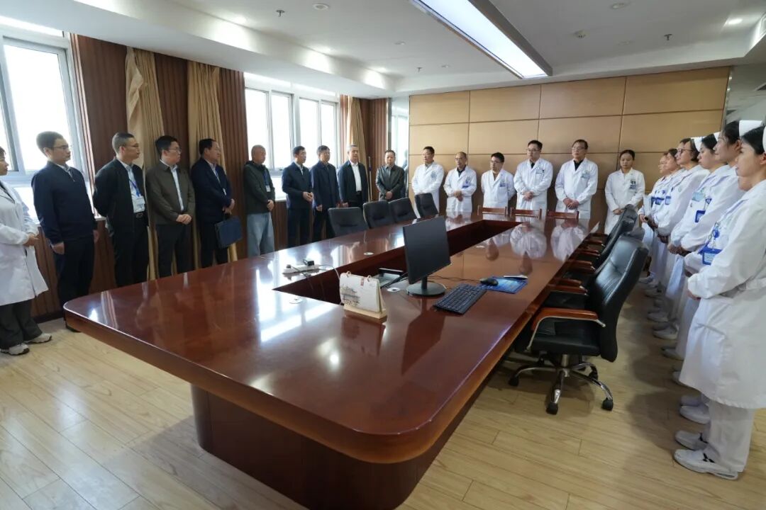 當(dāng)天清晨,醫(yī)院領(lǐng)導(dǎo)班子成員及相關(guān)職能科室負(fù)責(zé)人抵達(dá)新病區(qū),全程參與介入血管科的晨間交接班會議。領(lǐng)導(dǎo)們認(rèn)真傾聽夜班與白班醫(yī)護(hù)人員關(guān)于患者病情、治療方案及護(hù)理重點的詳細(xì)交接,并對科室未來發(fā)展提出了殷切期望和明確要求。