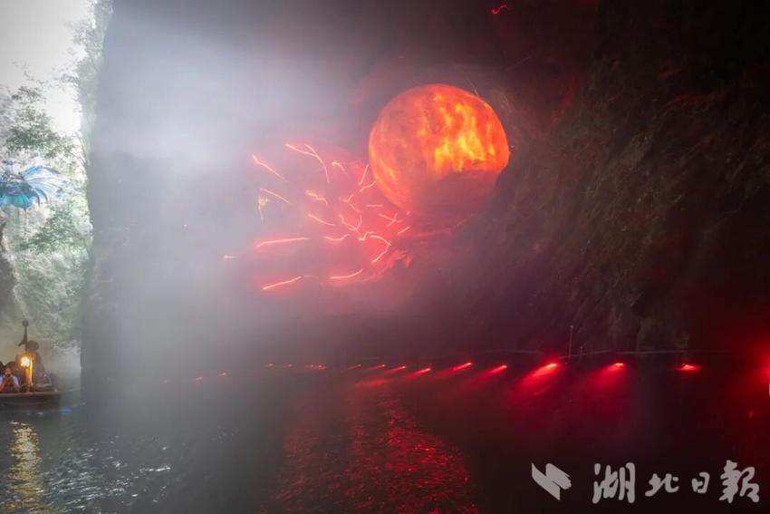 地心奇航游船:乘游船,緩緩駛?cè)雿{谷,在光影交錯(cuò)中探秘喀斯特奇觀。沿途水聲清越,宛如置身科幻秘境,開啟一段充滿想象力的地心穿越之旅。
