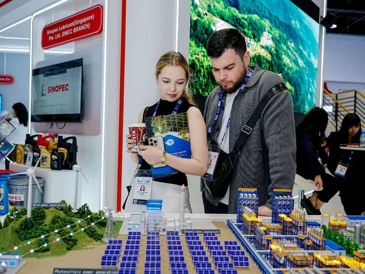 展會期間,中國石化展出的綠電制氫項目沙盤受到與會人士高度關注。據(jù)介紹,該模型展示了太陽能發(fā)電、風能發(fā)電、電力輸送、綠氫工廠、氫氣儲存和輸送、綠氫交通、綠氫煉化、地熱能供暖(制冷)等綜合應用場景,生動呈現(xiàn)了中國石化在可再生能源制氫成本降低和規(guī)模增長方面的成果,