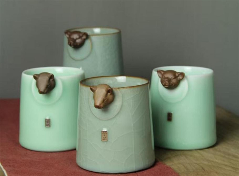 此次亮相的龍泉青瓷作品圍繞精致生活主題,展現(xiàn)了青瓷在日用瓷方面的創(chuàng)新。如浙江省工藝美術(shù)大師黃順民的《十二生肖水杯》巧妙融入生肖元素,杯身青釉溫潤(rùn),開(kāi)片紋理古意盎然,杯口的生肖頭部雕刻生動(dòng)細(xì)膩,實(shí)現(xiàn)傳統(tǒng)中國(guó)文化與龍泉青瓷工藝的完美融合;中國(guó)工藝美術(shù)大師、中國(guó)陶瓷藝術(shù)大師盧偉孫的《線(xiàn)性思緒手握杯》杯型直身微敞,杯身內(nèi)側(cè)與上唇露出白瓷胎,手工雕琢的線(xiàn)性紋理在涂抹青釉后,與光影交織出簡(jiǎn)潔唯美的“哲思者”輪廓,1300℃還原焰燒制的青釉擅長(zhǎng)表達(dá)青玉般潤(rùn)澤的東方質(zhì)感,青白層次對(duì)比盡顯中國(guó)瓷器當(dāng)代頂級(jí)美學(xué)。另一款《星空龜紋手握杯》則以遠(yuǎn)古龜甲紋為符號(hào),予以美好生活的祈福寓意,杯體配天然木紋底座,盡顯內(nèi)斂沉穩(wěn)的大家風(fēng)范,將中華文化底蘊(yùn)與當(dāng)代設(shè)計(jì)審美巧妙融合。