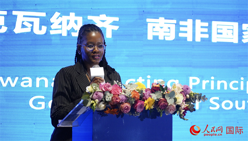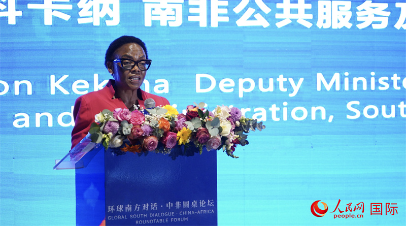 南非公共服務(wù)及管理部副部長(zhǎng)平基·莎倫·科卡納發(fā)表主旨發(fā)言。 人民網(wǎng) 劉暢攝