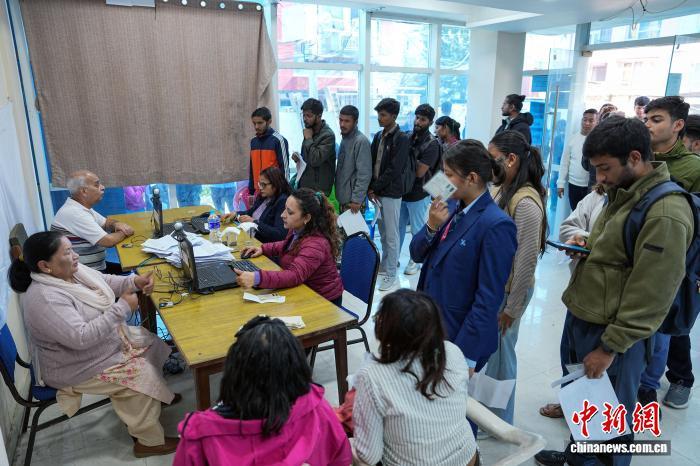 當?shù)貢r間11月11日,尼泊爾加德滿都,民眾在加德滿都地區(qū)選舉辦公室注冊選民信息。中新社記者 崔楠 攝
