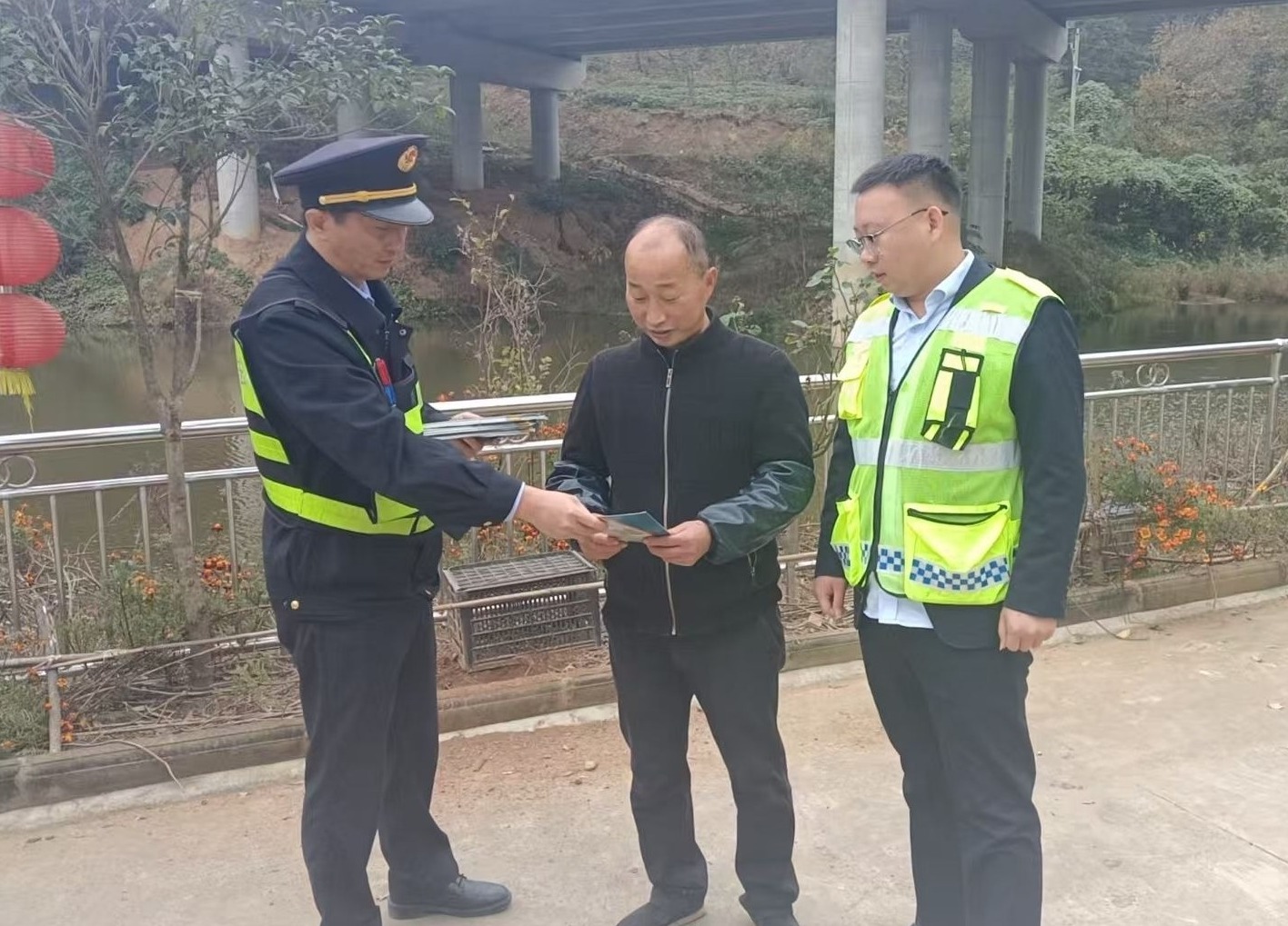 宣傳現(xiàn)場氣氛融洽。村舍前、田埂旁,執(zhí)法人員與村民圍站交流,逐一解答村民關(guān)心的涉路維權(quán)、安全通行等問題。一位接過宣傳冊的村民說:“原來在橋下放東西這么危險,以后可要注意了,還得提醒身邊鄰居也遵守規(guī)定?!边@種“接地氣”的普法方式,覆蓋沿線2個行政村,讓村民逐步樹立法治理念和愛路護路意識。