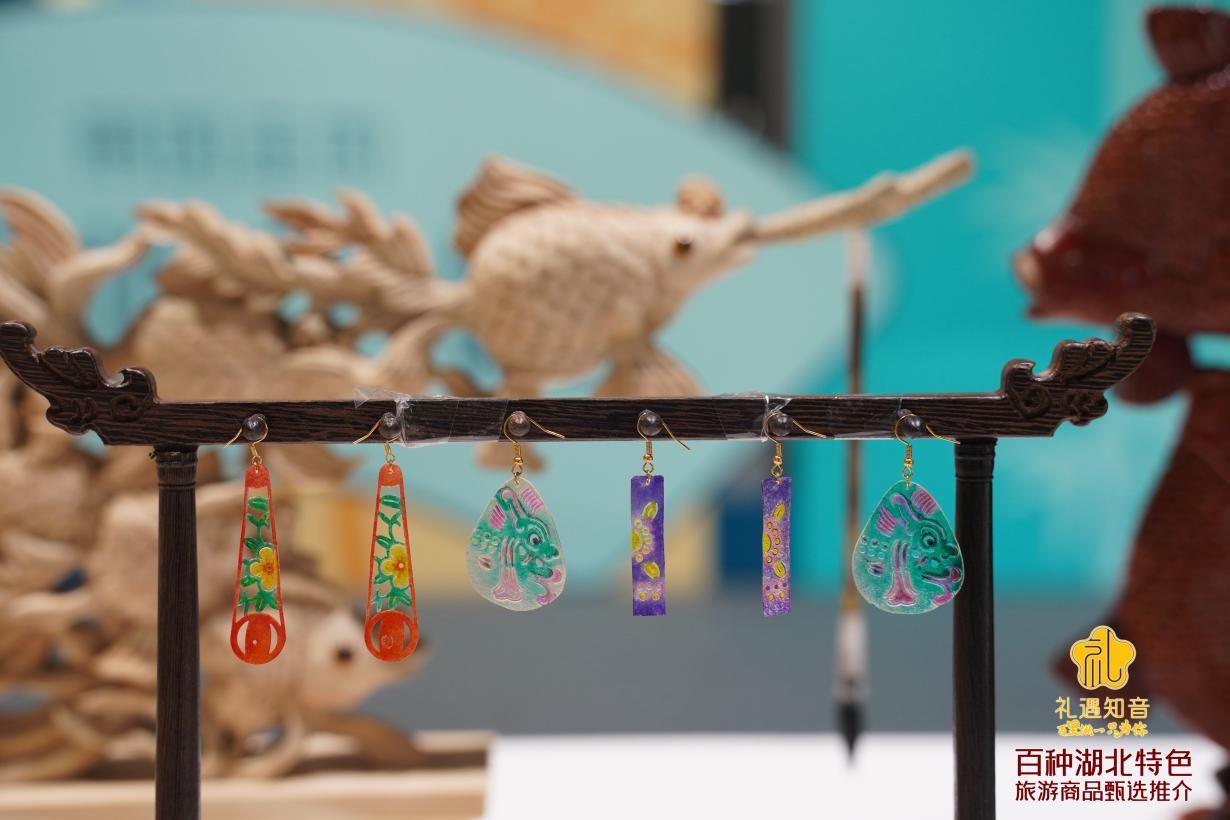 在“非遺精粹”區(qū),傳統(tǒng)手藝煥發(fā)全新生命力。楚韻真絲方巾,把江漢風(fēng)光織進絲緞;土家織錦西蘭卡普,將撞色美學(xué)融入設(shè)計;非遺皮影被微縮成藝術(shù)耳環(huán),華容土布制成的保齡球手提包,將時尚度拉滿;還有曾侯乙編鐘套裝、黃鶴樓詩詞指甲鉗等精巧小物,令人愛不釋手——它們不只是物件,更是可穿戴、可分享的荊楚文化。