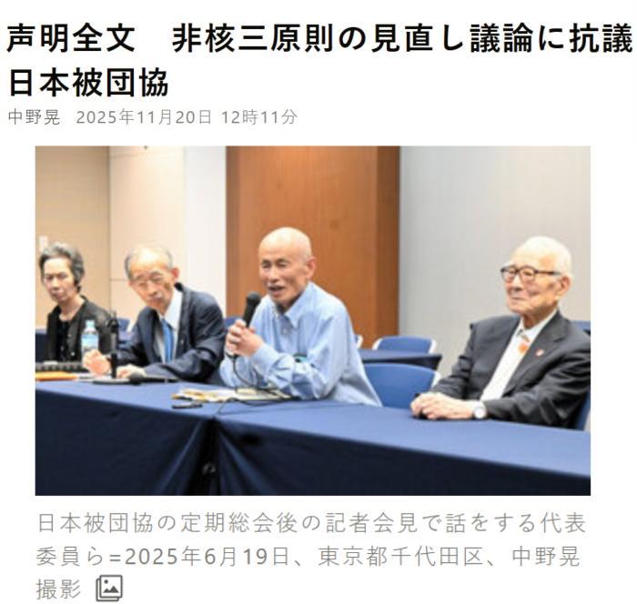 中新網(wǎng)11月20日電 據(jù)日本《朝日新聞》報(bào)道,當(dāng)?shù)貢r(shí)間20日,日本原子彈氫彈爆炸受害者團(tuán)體協(xié)議會(huì)就日本首相高市早苗考慮修改“無(wú)核三原則”一事發(fā)表致高市的聲明,稱(chēng)“這將顛覆迄今為止的政府見(jiàn)解,強(qiáng)烈抗議開(kāi)啟修改‘三原則’的討論”。