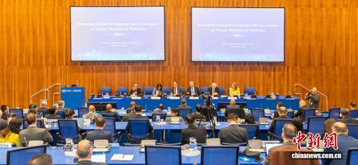 當?shù)貢r間11月19日,中國常駐維也納代表團在維也納聯(lián)合國總部舉辦全球發(fā)展倡議和全球治理倡議主題研討會。圖為會議現(xiàn)場。(中國常駐維也納代表團供圖)