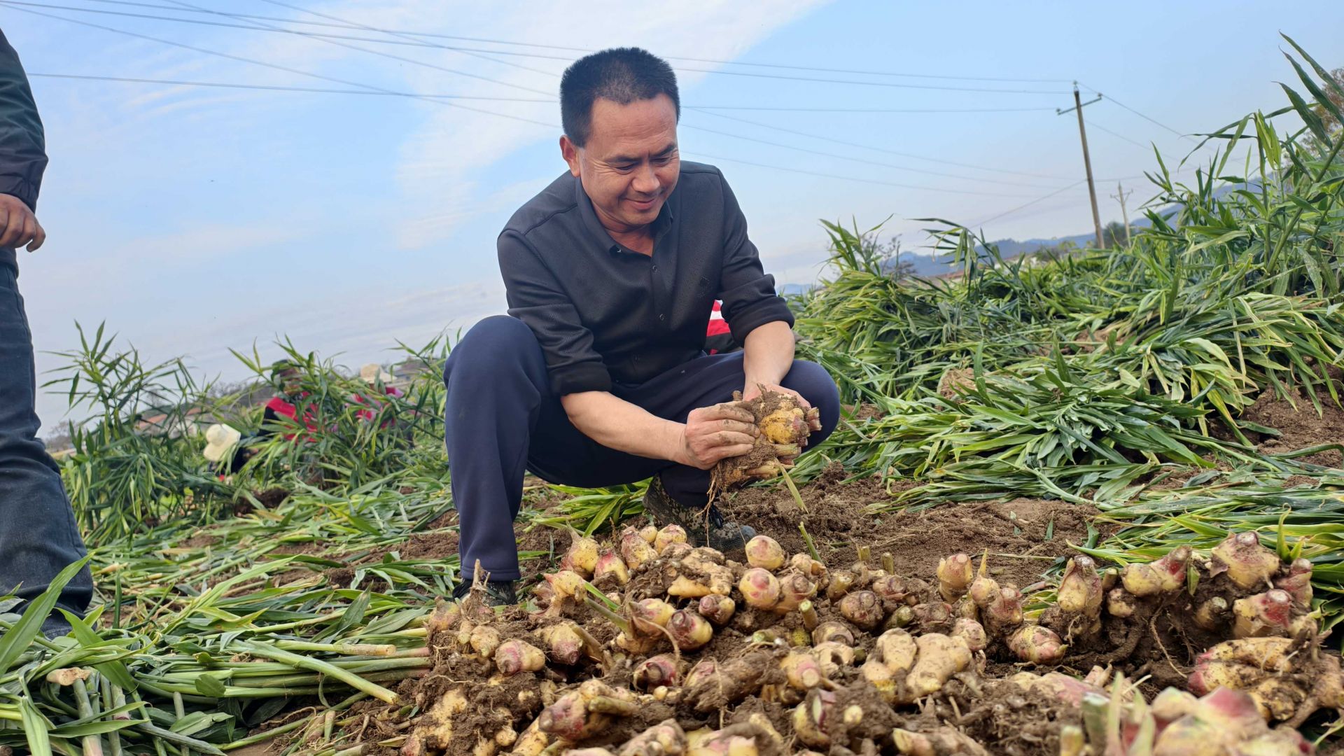“這生姜個(gè)頭大、品相好,掰開辛香味撲鼻,今年準(zhǔn)能賣個(gè)好價(jià)錢!”正在采收的村民臉上滿是喜悅,將新鮮生姜在身后整齊碼放。