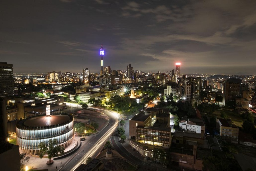 這是2023年1月31日在南非約翰內(nèi)斯堡拍攝的城市夜景。新華社記者 張譽東 攝