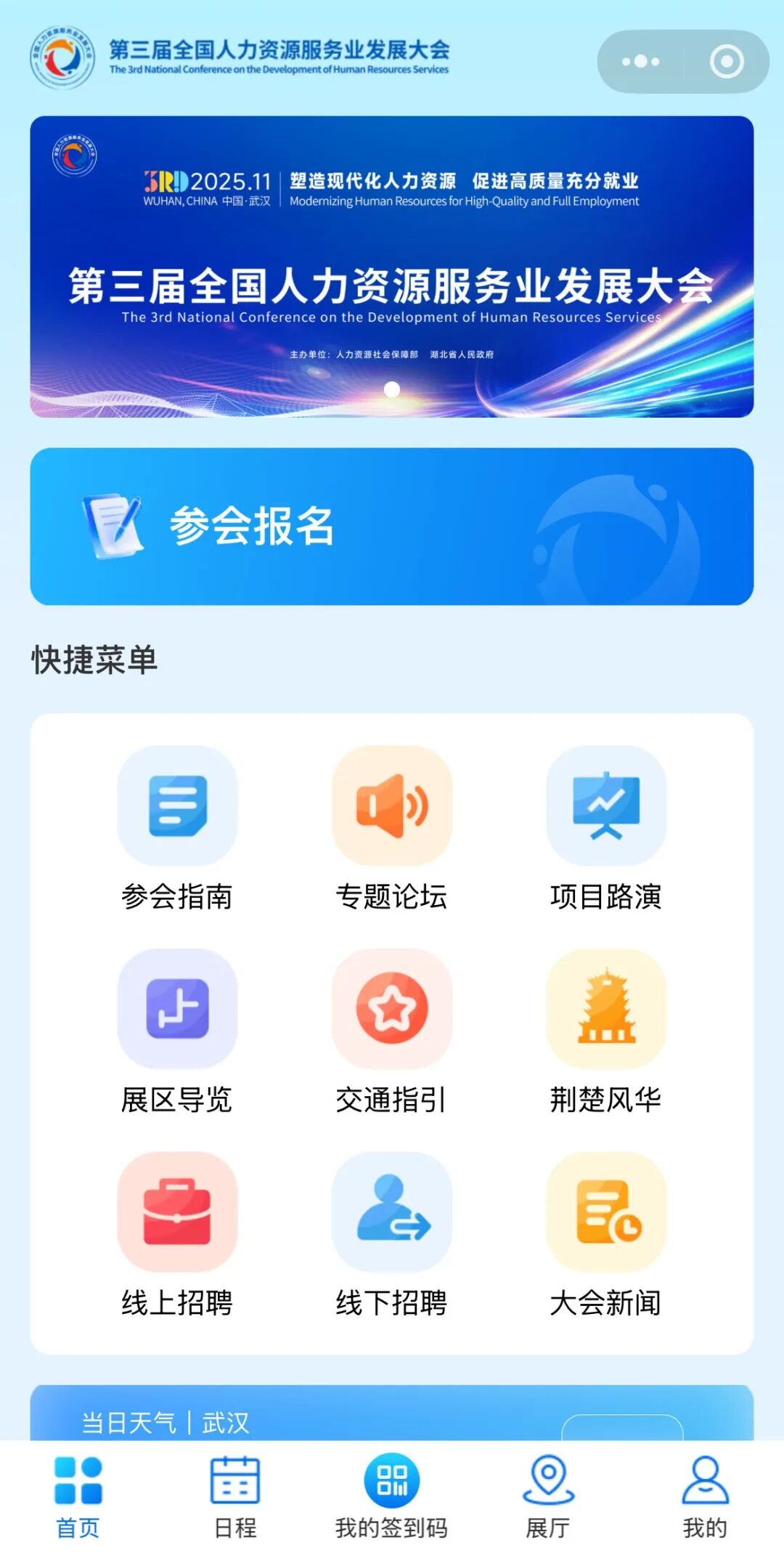 1.掃碼進入小程序。在小程序首頁,點擊“參會報名” 按鈕,進入報名界面。