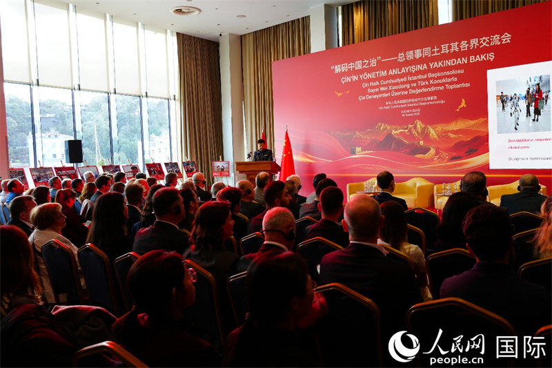 人民網(wǎng)伊斯坦布爾11月27日電 (記者李明)當(dāng)?shù)貢r間11月26日,中國駐伊斯坦布爾總領(lǐng)事館舉辦“解碼中國之治”——總領(lǐng)事同土耳其各界交流會。中國駐伊斯坦布爾總領(lǐng)事魏曉東出席并發(fā)表主旨演講。土工商界、智庫、媒體、高校代表,領(lǐng)區(qū)中資企業(yè)和機(jī)構(gòu)負(fù)責(zé)人等160余人出席。
