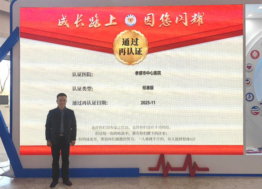 此次再認證不僅是榮譽的延續(xù),更是責任的升級。未來,孝感市中心醫(yī)院將持續(xù)發(fā)揮區(qū)域醫(yī)療中心的標桿引領作用,以國家級標準為基石,不斷拓寬救治覆蓋面、提升診療精準度,為孝感及周邊地區(qū)居民筑起一道更堅固、更高效的心血管健康防護墻,為降低區(qū)域心血管疾病致死率、致殘率作出新的更大貢獻!