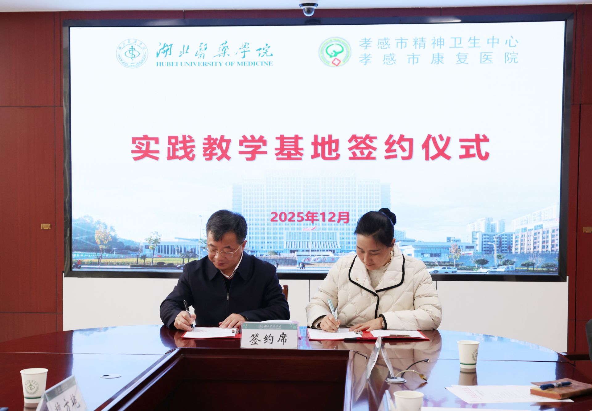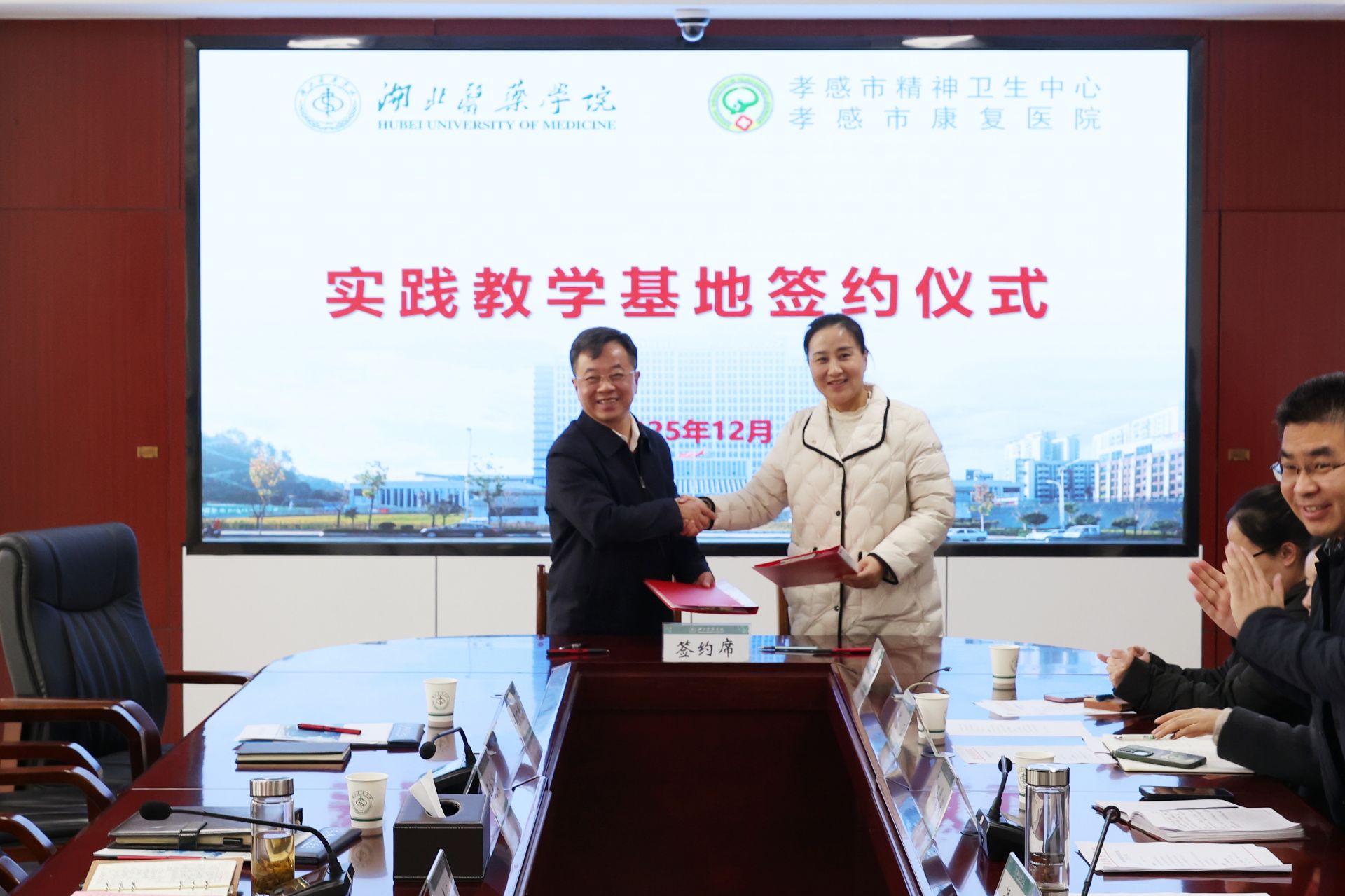 活動(dòng)中,雙方圍繞教學(xué)實(shí)習(xí)、科研合作、繼續(xù)教育等關(guān)鍵議題展開深入探討,達(dá)成廣泛共識(shí)。湖北醫(yī)藥學(xué)院副校長(zhǎng)譚艷和孝感市康復(fù)醫(yī)院院長(zhǎng)劉曉安分別代表雙方單位,正式簽訂合作協(xié)議。2026年10月,湖北醫(yī)藥學(xué)院將選派10名精神醫(yī)學(xué)專業(yè)學(xué)生與10名護(hù)理專業(yè)學(xué)生,赴我院開展臨床實(shí)習(xí)。雙方在以后的合作中將重點(diǎn)聚焦三大方向:一是優(yōu)化實(shí)習(xí)帶教體系,打造臨床醫(yī)學(xué)與護(hù)理專業(yè)優(yōu)質(zhì)實(shí)踐平臺(tái);二是建立常態(tài)化學(xué)術(shù)交流機(jī)制,共享資源提升教育教學(xué)質(zhì)量;三是依托學(xué)科優(yōu)勢(shì)聯(lián)合攻關(guān),圍繞精神疾病防治等領(lǐng)域推進(jìn)科研創(chuàng)新,產(chǎn)出更多臨床價(jià)值成果。