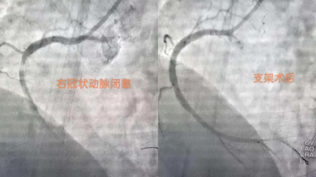 搶時間就是搶生命!06:46穿刺,06:47成功,06:49冠脈造影明確:右冠狀動脈中段完全閉塞。導(dǎo)絲迅速通過,支架精準(zhǔn)植入,07:03血流恢復(fù),手術(shù)成功結(jié)束。患者胸痛明顯緩解,生命體征趨于平穩(wěn)。從入院到血管再通,不到兩小時。