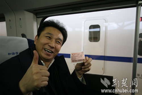荊楚網(wǎng)消息(記者姚啟慧)26日上午9時(shí),武廣高鐵發(fā)出首趟列車,不少武漢游客專門前來體驗(yàn),在3號(hào)車廂,記者遇到了武漢著名“笑星”田克兢。他坦言,乘高鐵體驗(yàn)既驚又喜,今后要把這次經(jīng)歷融入自己作品中。