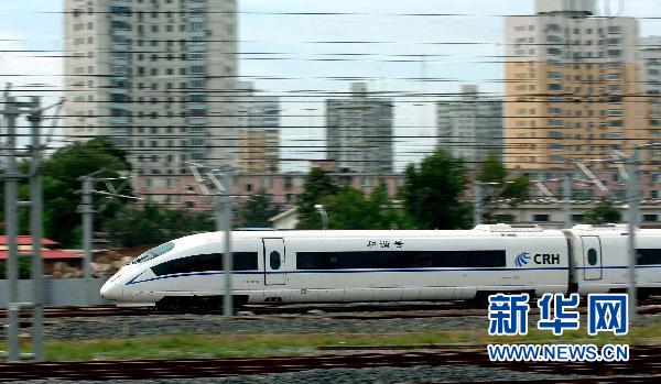 這是我國(guó)第一條擁有完全自主知識(shí)產(chǎn)權(quán)、具備世界一流水平的城際高速鐵路——京津城際高速鐵路的列車(chē)從北京南站駛出(2008年8月1日攝)。新華社記者公磊攝