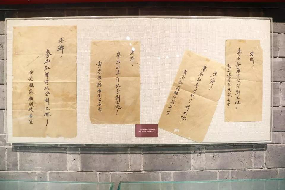 黃麻起義和鄂豫皖蘇區(qū)紀(jì)念園展示的傳單,上面寫著“老鄉(xiāng),參加紅軍可以分到土地!”