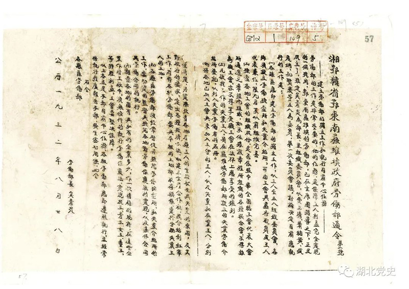 1932年8月28日,湘鄂贛省鄂東南蘇維埃政府勞動(dòng)部發(fā)布第一號(hào)通令